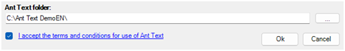 ANT TEXT ▶ Configuration ▶ Settings ▶ License key