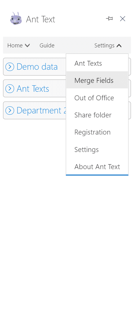 In order to find the merge field settings, go to the Ant Panel “Settings” and then “Merge Fields“.