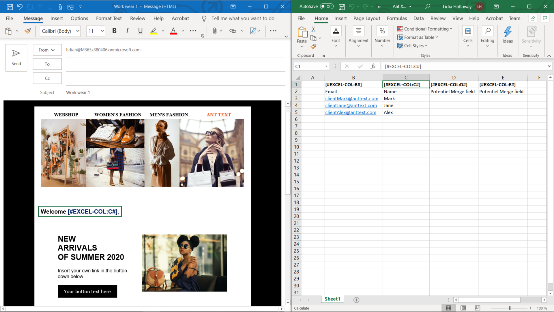 The Ant XL merge fields comes from a Microsoft Excel file that contains the names of your contact list, subscribers, clients or any other list for your campaigns, newsletters, bulk emails etc.